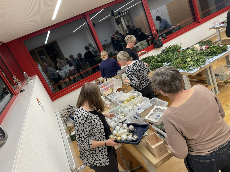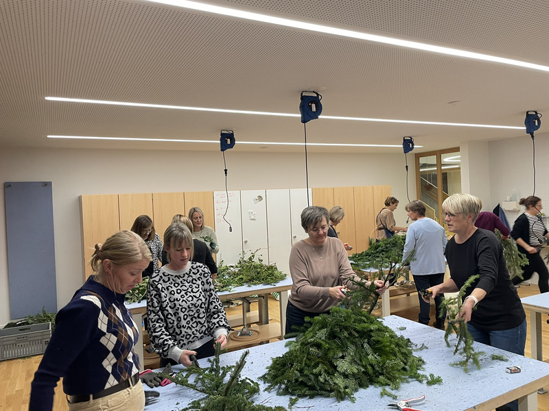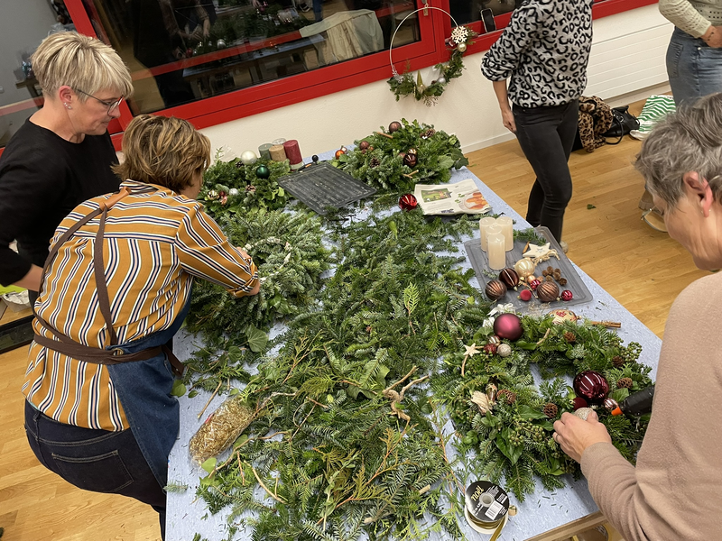In gemütlicher Atmosphäre wurden Zweige gebunden, Kerzen platziert und liebevolle Details arrangiert. Der Duft von Tannengrün und der Klang fröhlicher Gespräche machten den Nachmittag und Abend besonders festlich.